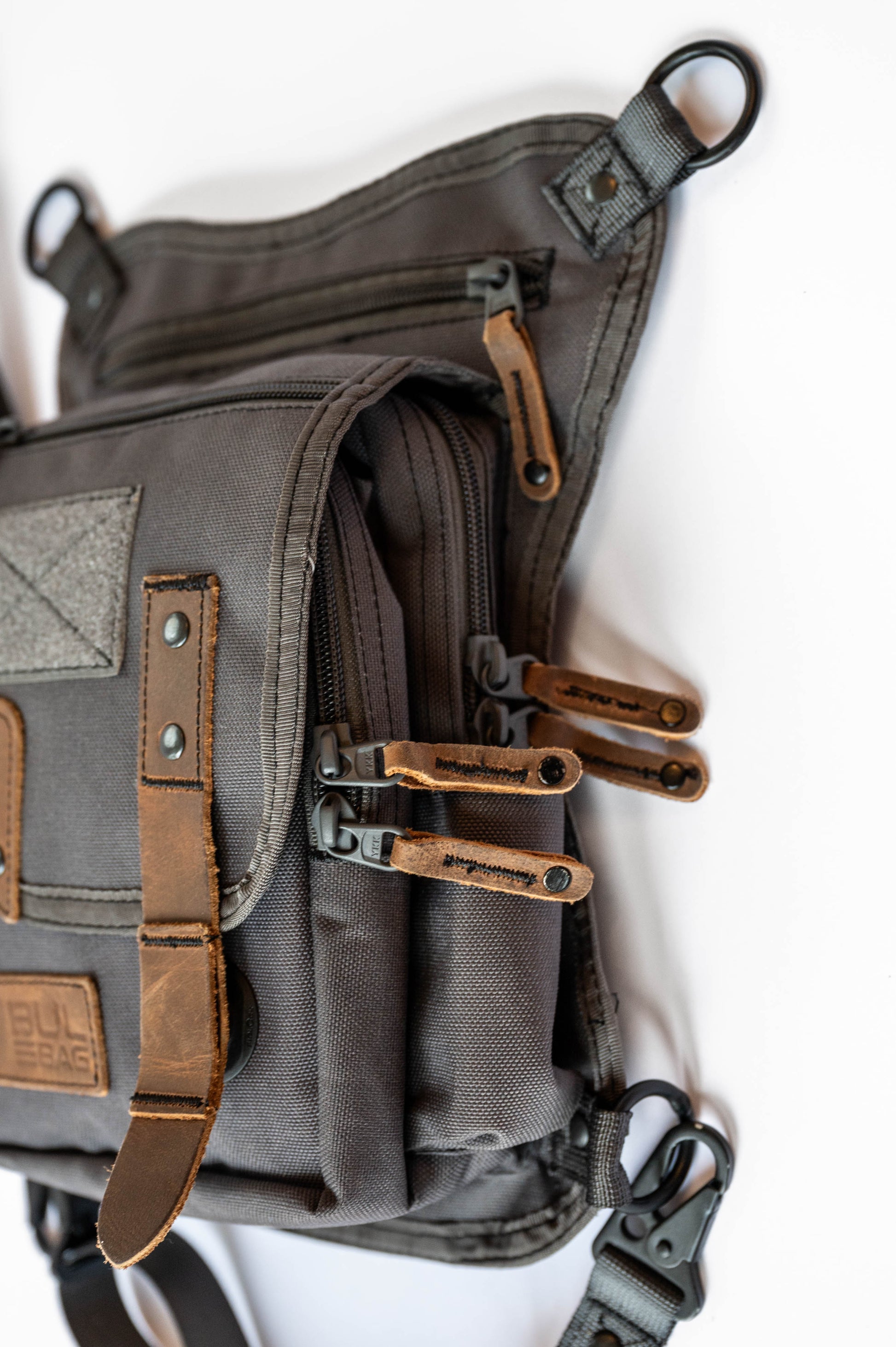 The BULBAG Saddleback has high-end leather accents, zipper-pulls, closure strap, logo tag, and face corner. Made of heav duty 1000 Denier 100% Nylon, DWR, PU *2 coated fabric, with YKK Zippers and our advanced magnetic/gate self-closing closure system. Water proof, dust proof material. Non-submersible but good and dry in a rain storm.