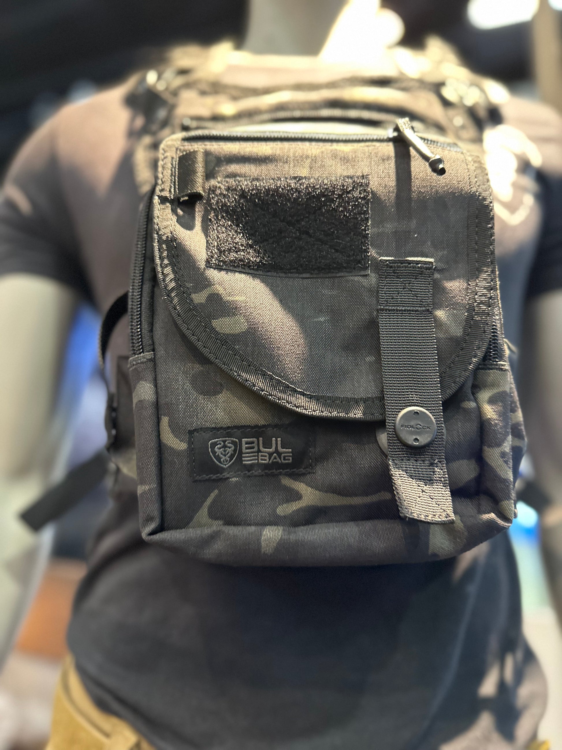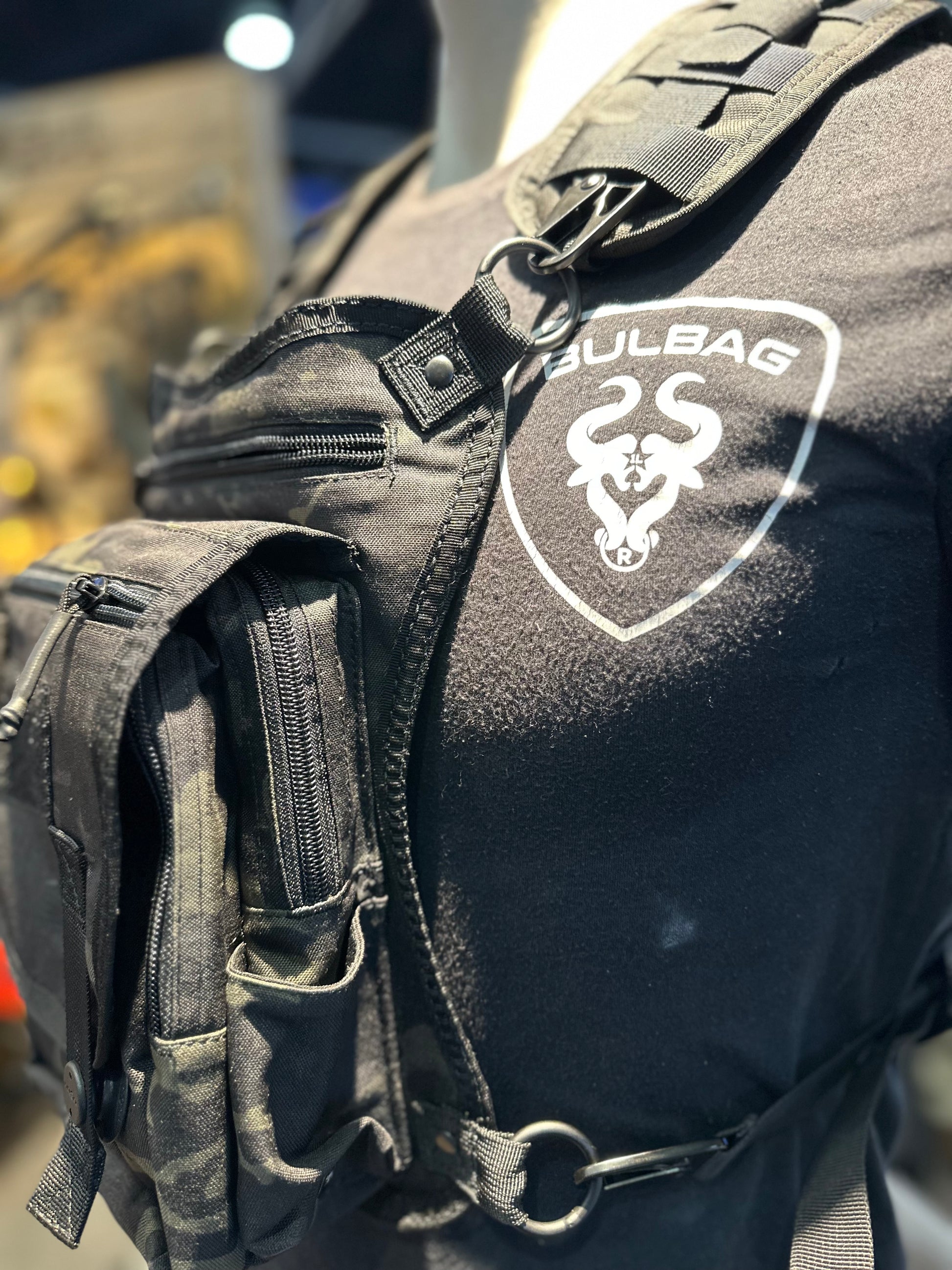 Padded H-Harness for all-day comfort when using your BULBAG in the chest rig configuration. 4 HK clips attach and allow for pulling your adjustment tethers to get a snug fit against your chest. Add our Level IIIA soft Kevlar insert kit ($180) to convert your BULBAG into a protective vest. Available in black.